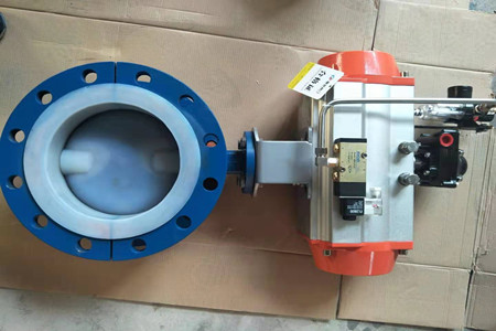 氣動(dòng)襯氟蝶閥是用隨閥桿一起轉(zhuǎn)動(dòng)的蝶板作啟閉件,用以實(shí)現(xiàn)閥門的開啟、關(guān)閉與調(diào)節(jié)。另外,蝶閥還有體積小、重量輕、結(jié)構(gòu)簡(jiǎn)單等優(yōu)點(diǎn),與同參數(shù)閘閥比較,平均減輕重量達(dá)30~50%,蝶板旋轉(zhuǎn)90°即可實(shí)現(xiàn)啟、閉過程,又由于轉(zhuǎn)軸兩側(cè)蝶板受介質(zhì)作用力近似相等,轉(zhuǎn)矩相反,因此啟閉力矩較小。